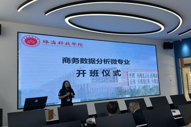 为助力企业数字化转型需求,培养高素质商务数据分析人才,商务数据分析微专业开班仪式于10月26日在国学院K109顺利举行。金融与贸易学院党委书记、院长杨帅,副院长何淼,微专业负责人沈颂东,微专业授课教师代表黄刚伟,微专业主任李茜茜及首批100余名同学共同出席仪式。