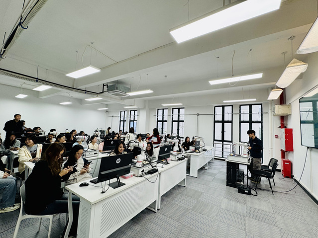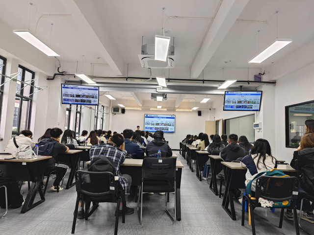 在实训中心课堂上,行业专家围绕智能制造的全球趋势、产业链竞争格局以及未来技术方向进行了深度分享。讲解内容从全球机器人市场需求变化、技术迭代路径,到智能装备如何提升我国企业在国际贸易中的议价能力,帮助学生在专业知识框架之外获得更广阔的国际视野。