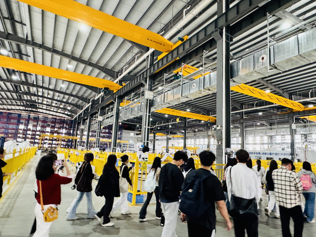 在智能装备技术研究院中试楼应用实验室,学生们走进工业机器人真实应用场景,观察焊接、搬运、装配等工艺流程,感受自动化生产线在数字化转型中的关键作用。通过现场工程师的专业讲解,同学们对机器人技术如何推动制造业效率提升、如何重塑全球供应链格局有了更直观的认识。随后的生产车间参观进一步深化了学生对“中国智造”的理解。华数机器人在整机装配、核心部件研发等方面的成果展示,不仅体现了我国智能装备产业的快速发展,也折射出高端制造如何成为我国外贸出口的重要增长点。学生们从产品结构、发展历程到国际竞争力的构建,系统了解智能产业与外贸结构升级之间的内在联系。