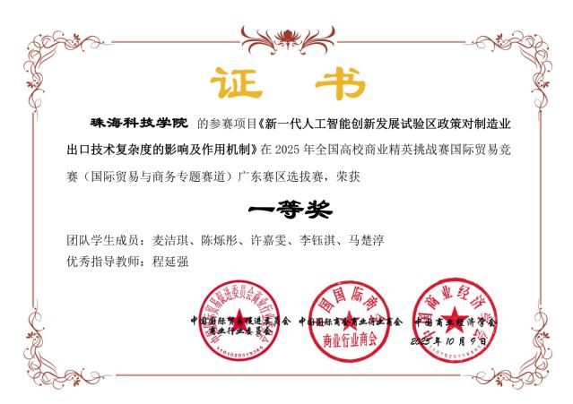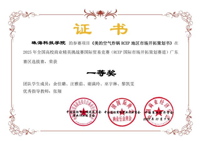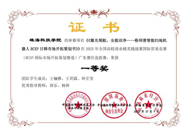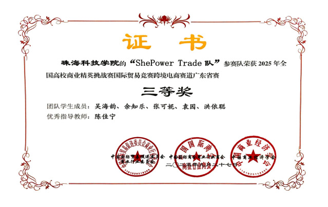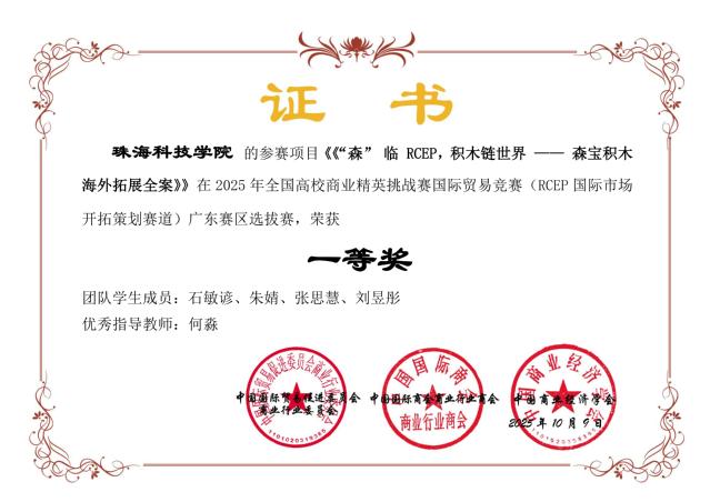 捷报传来,实力亮相。近日,2025年全国高校商业精英挑战赛国际贸易竞赛广东赛区结果公布,珠海科技学院金融与贸易学院再度交出亮眼答卷。学院在RCEP国际市场开拓策划、国际贸易与商务专题、跨境电商三大赛道上齐头并进,共斩获22项省级奖项,其中一等奖12项、二等奖8项、三等奖2项,三大板块全面突破、成绩斐然。