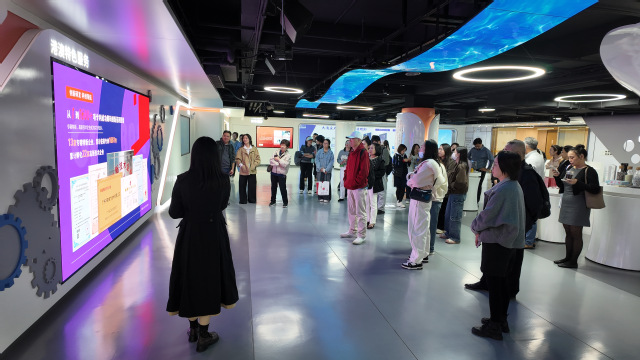 培训首日上午,参训教师们在双创基地讲解员的带领下,依次参观了双创基地的多个区域。在A栋1楼接待中心,教师们对双创基地的整体布局和功能定位有了初步了解。随后,大家前往A栋3楼新品试制实验室,近距离观察了前沿科技产品的研发过程,对人工智能、新一代信息技术等领域的创新实践有了更直观的认识。在A栋5楼的AIGC-3D打印创意展区,教师们被3D打印技术所吸引,纷纷驻足交流。最后,教师们还参观了B栋创意展示区,感受了创新创业的浓厚氛围。