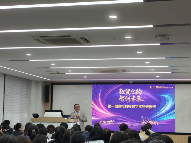 会议期间,我院教师认真聆听了来自浙江大学中国数字贸易研究院院长马述忠教授关于“人工智能重塑数字贸易产业未来”的主题报告,深入了解AI技术对数字贸易发展格局的深远影响。大赛秘书长易建安围绕“AI赋能+产教融合”的大赛特色进行系统讲解,进一步明确了赛事在推动教学改革与产教协同中的重要作用。