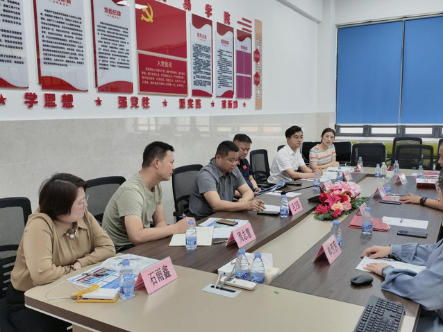 2026年4月17日,韶山红旅集团党委书记、董事长毛卫国,党委副书记刘钊,韶山红旅研学教育咨询服务有限责任公司总经理周志慧,韶山红色教育培训有限公司总经理徐双全等一行莅临金融与贸易学院,开展调研访谈活动。金融与贸易学院党委书记、院长杨帅,旅游与公共管理学院副院长丁林,金融与贸易学院党委副书记、学工办主任单芳芳等人出席座谈会。双方围绕党建共建、课程思政课程开发等议题进行了深入交流,并达成初步合作意向。