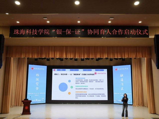 本次“银-保-证”协同育人战略合作的启动,是珠海科技学院主动对接粤港澳大湾区金融产业发展需求、深化教育教学改革的重要实践。来自银行、证券、保险等36家金融企业的集体参与,不仅彰显了行业对协同育人模式的高度认同,更为构建覆盖金融全领域的产教融合平台奠定了坚实基础。